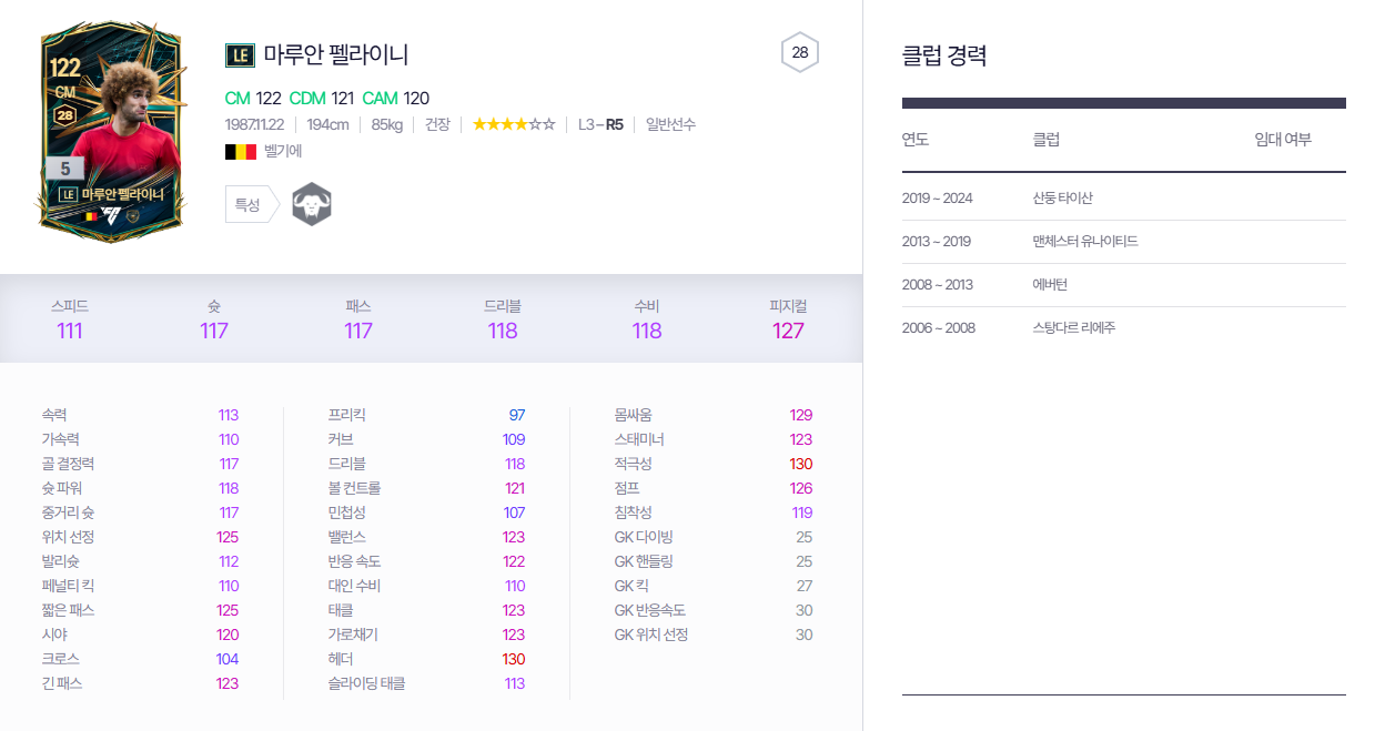 5카 기준 : 짧패 125 | 시야 120 | 크로스 104 | 긴패스 123 | 커브 109