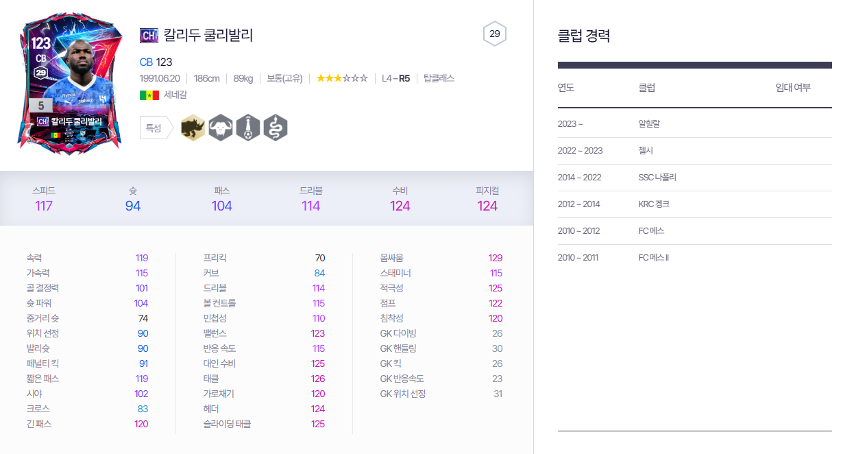 CH 쿨리발리 추천 포지션 - CB(1티어)