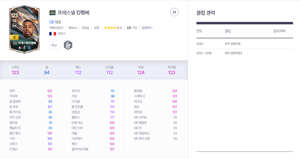 GRU 킴펨베 추천 포지션 - CB(1티어)