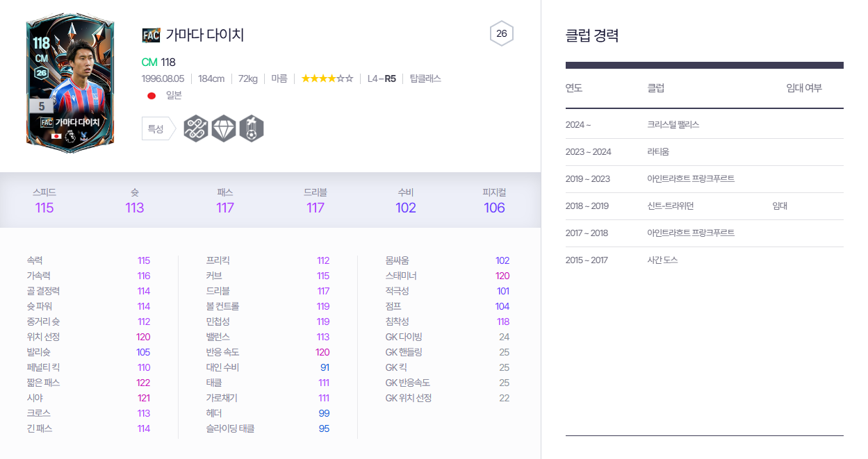 fac 다이치 추천 포지션 - CM, CAM(1티어), LW, RW(1.5티어)
