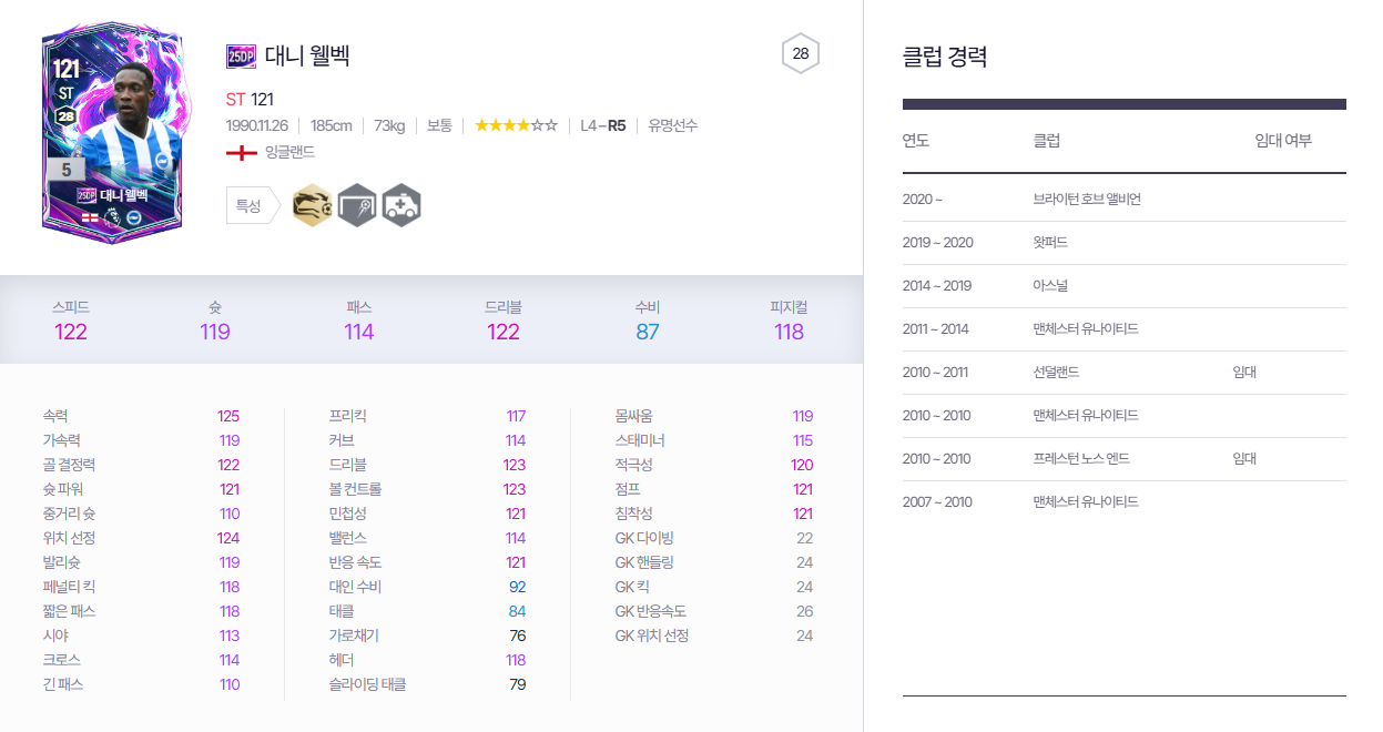 25dp 웰벡 추천 포지션 - ST(1티어)