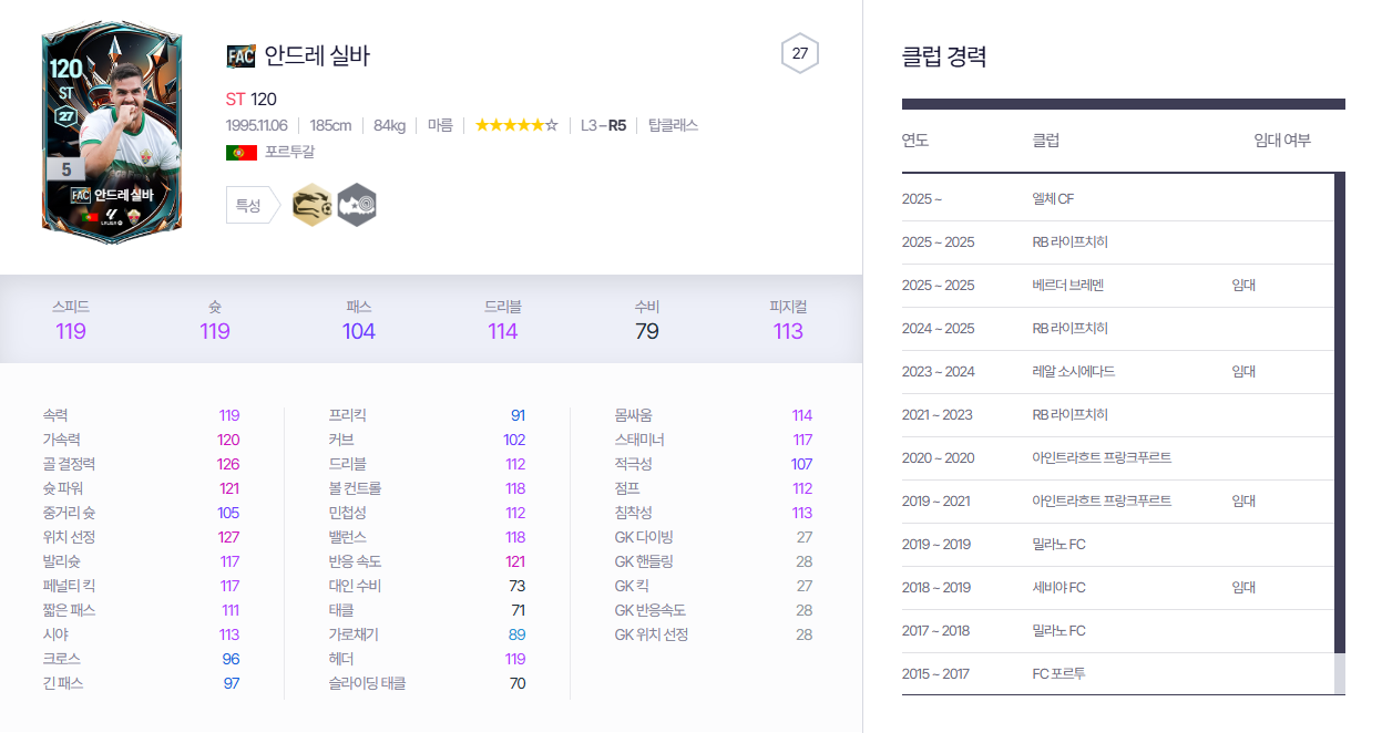fac 실바 추천 포지션 - ST, CF(1티어)