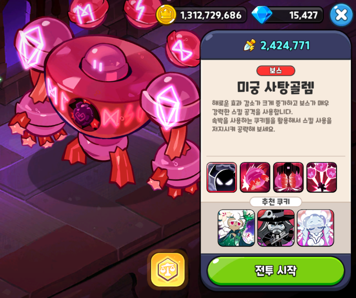 미궁 사탕 골렘에 쿠키들이 부숴질 예정이기에..