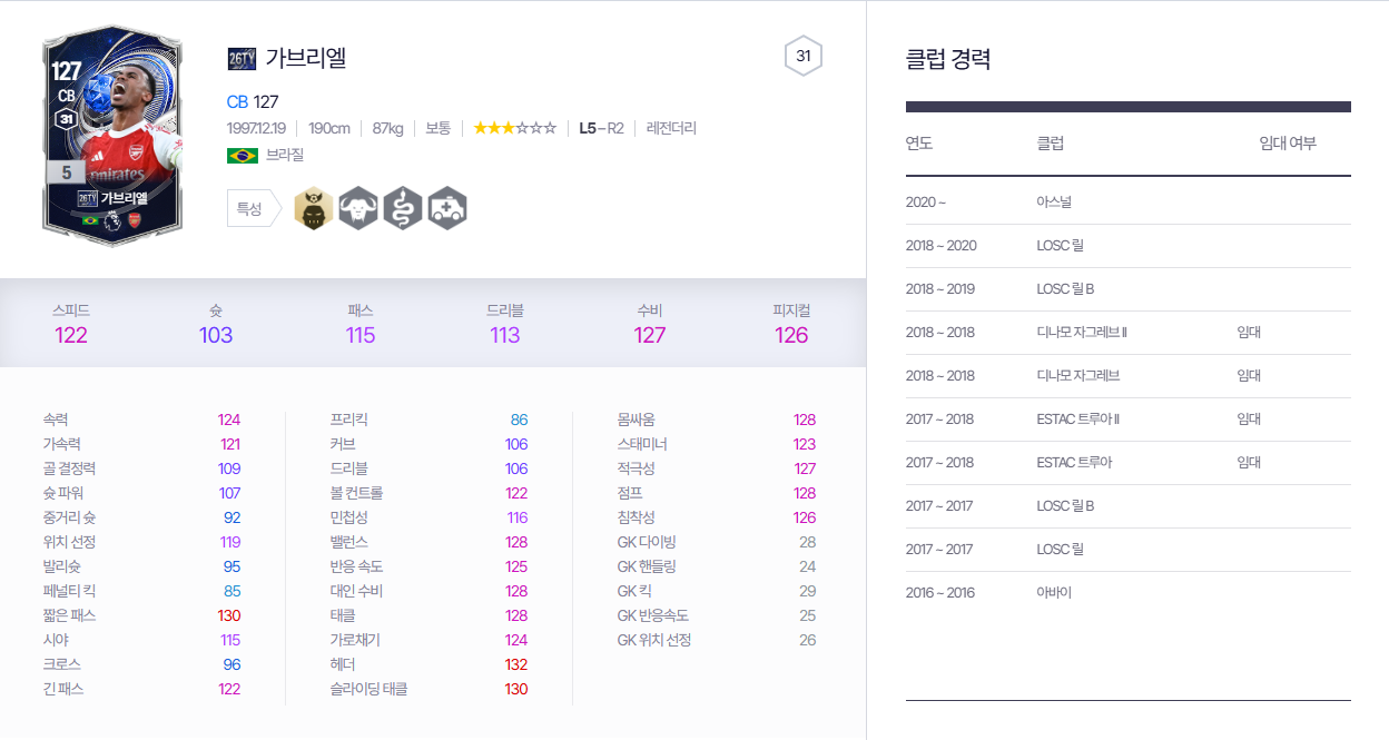 26노미니 가브리엘 추천 포지션 - CB(1티어)