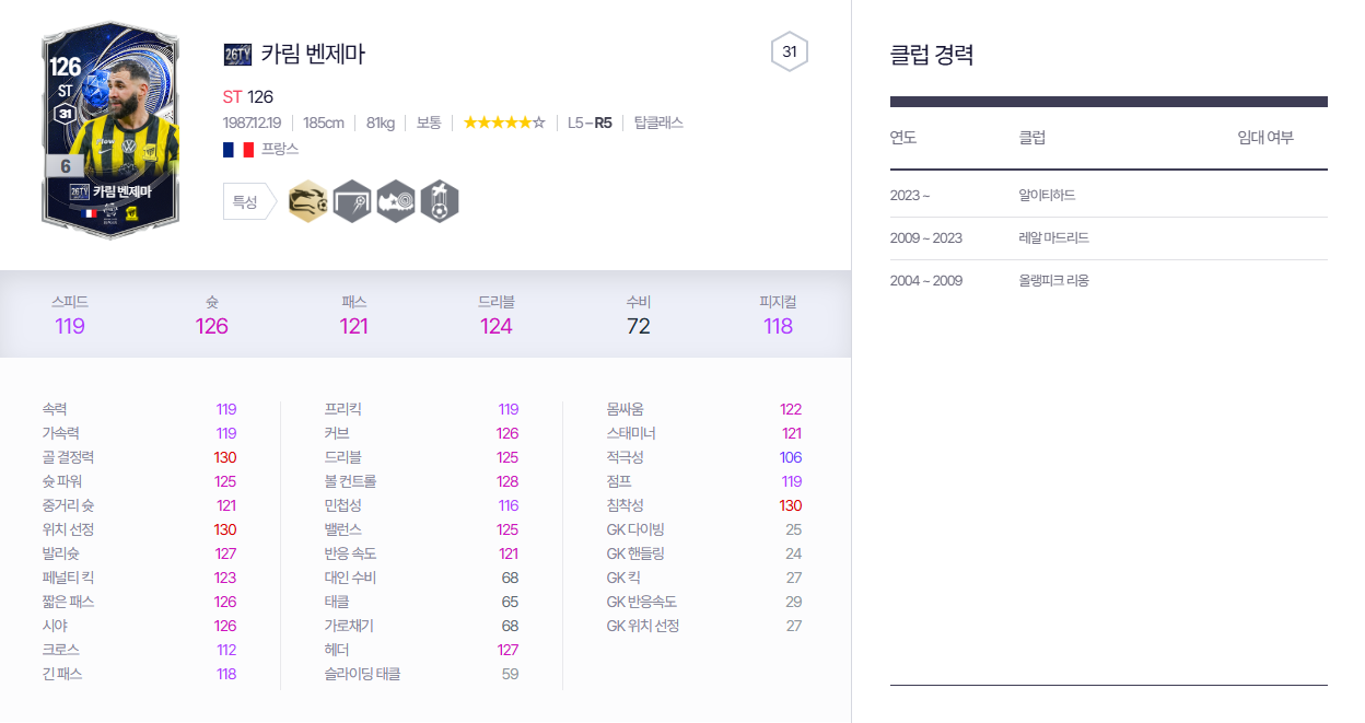 26노미니 벤제마 추천 포지션 - CF, ST(1티어)